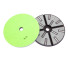 These high quality polish heads use metal bond diamond surrounded by synthetic resin diamond for smooth grinding and polishing in the early stages of slab processing before polishing with resin only heads. They can also be used for floor grinding.